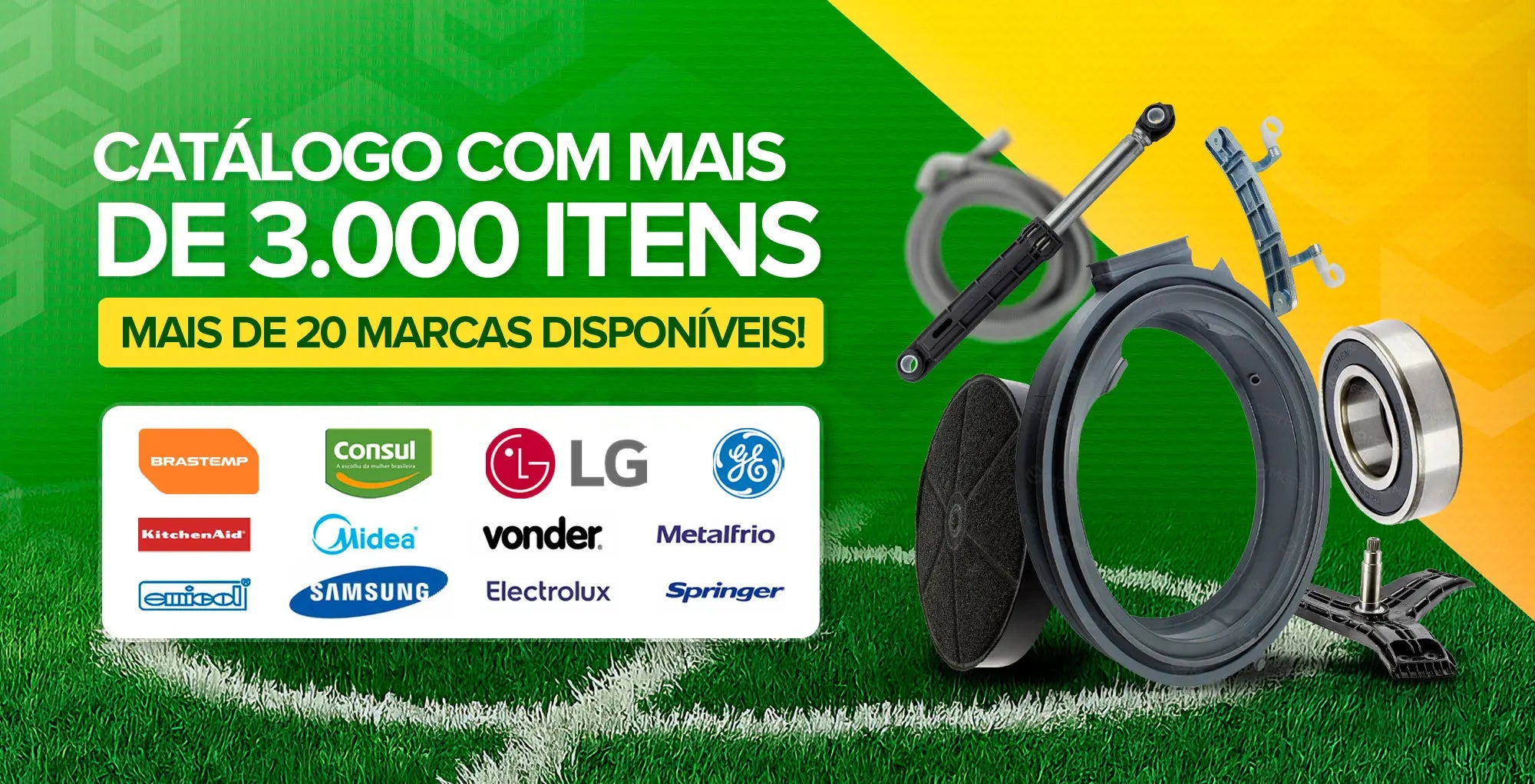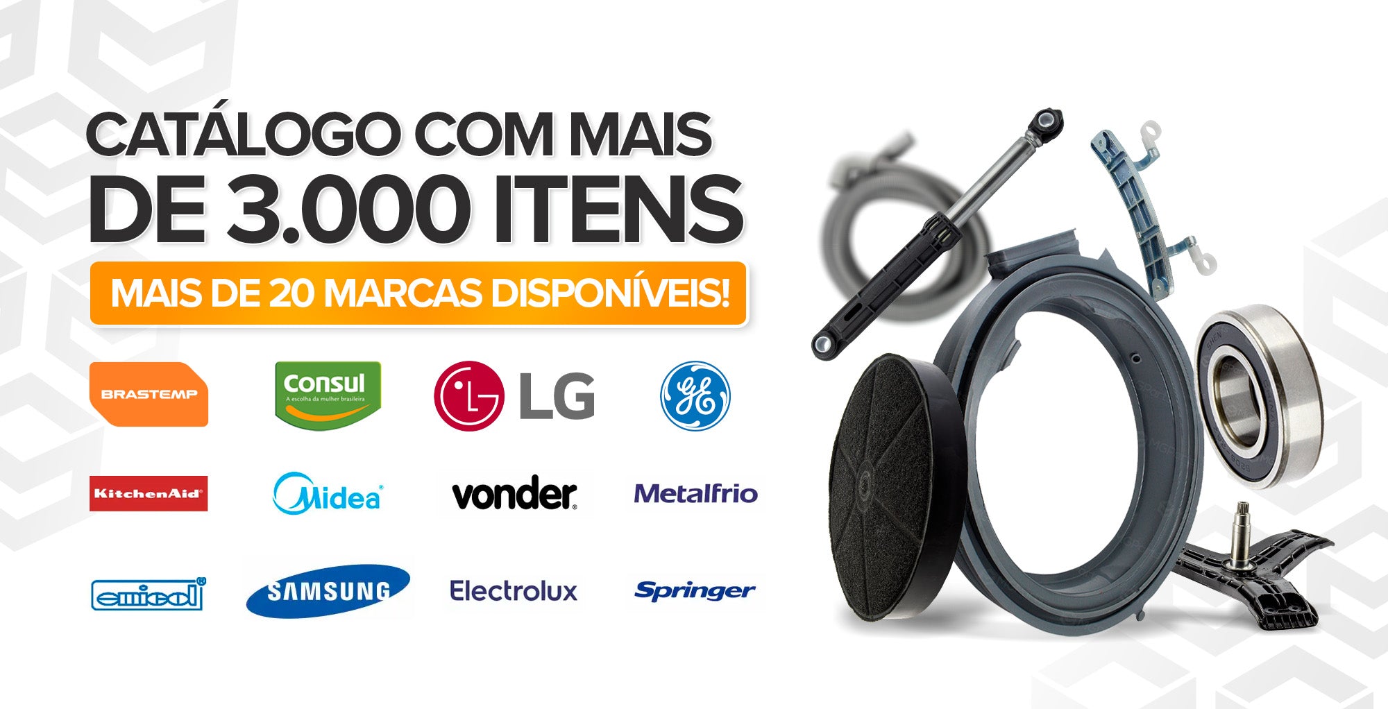 Somos uma loja de peças de eletrodomésticos especializada no ramo e trabalhamos com as melhores peças e acessórios genuínos, para várias marcas, como: Bosch, Brastemp, Consul, Continental, Electrolux, GE, Gelopar, Samsung, Kitchenaid, LG, Metalfrio, Midea, Springer e Whirlpool. Conte com quem entende de peças para eletrodomésticos!