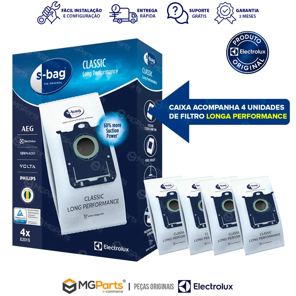 KIT 4 SACOS COLETOR PARA ASPIRADOR DE PÓ ELECTROLUX ORIGINAL DE LONGA PERFORMANCE