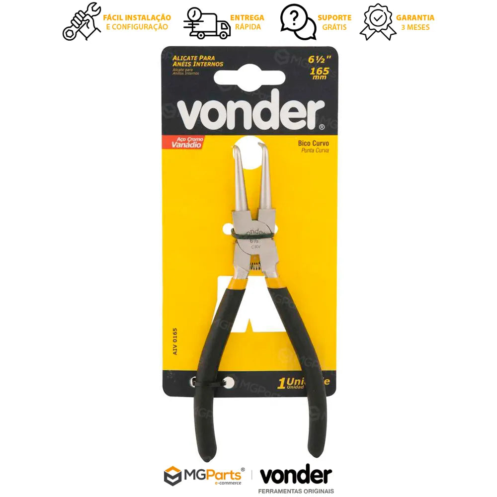 Alicate para Anéis Internos Vonder Bico Curvo 6.1/2
