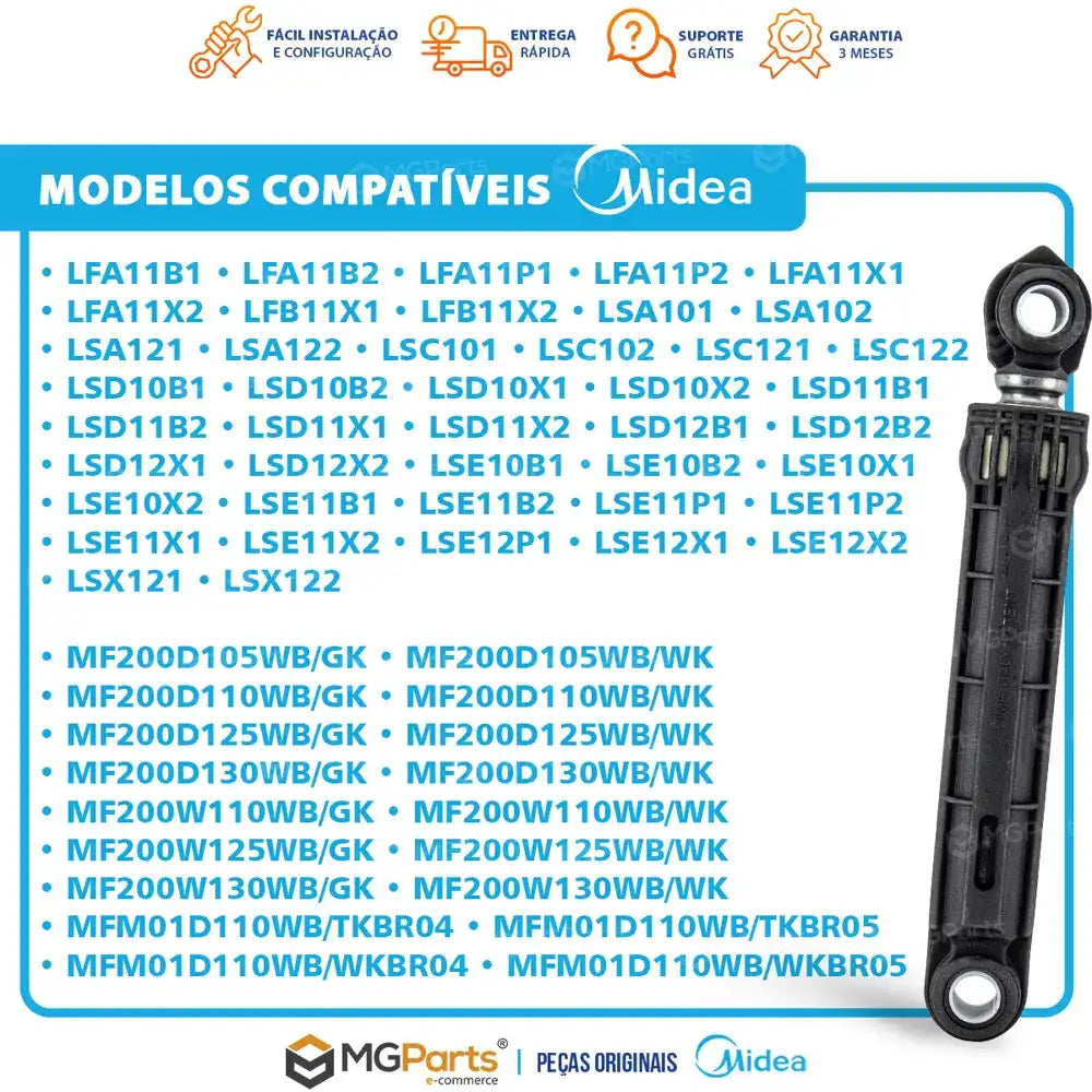 Compre amortecedor original Midea para lava e seca. Reduza vibrações e ruídos, prolongue a vida útil da sua lavadora com peça de qualidade garantida.