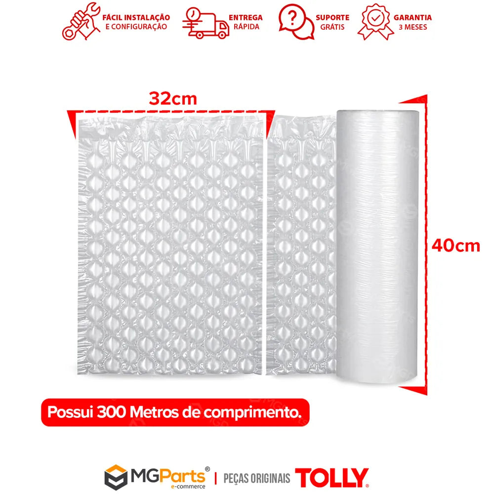 REFIL SACO PLÁSTICO PARA ENCHIMENTO BOLHA COLMEIA 40X32CM – 300 METROS – TOLLY ORIGINAL