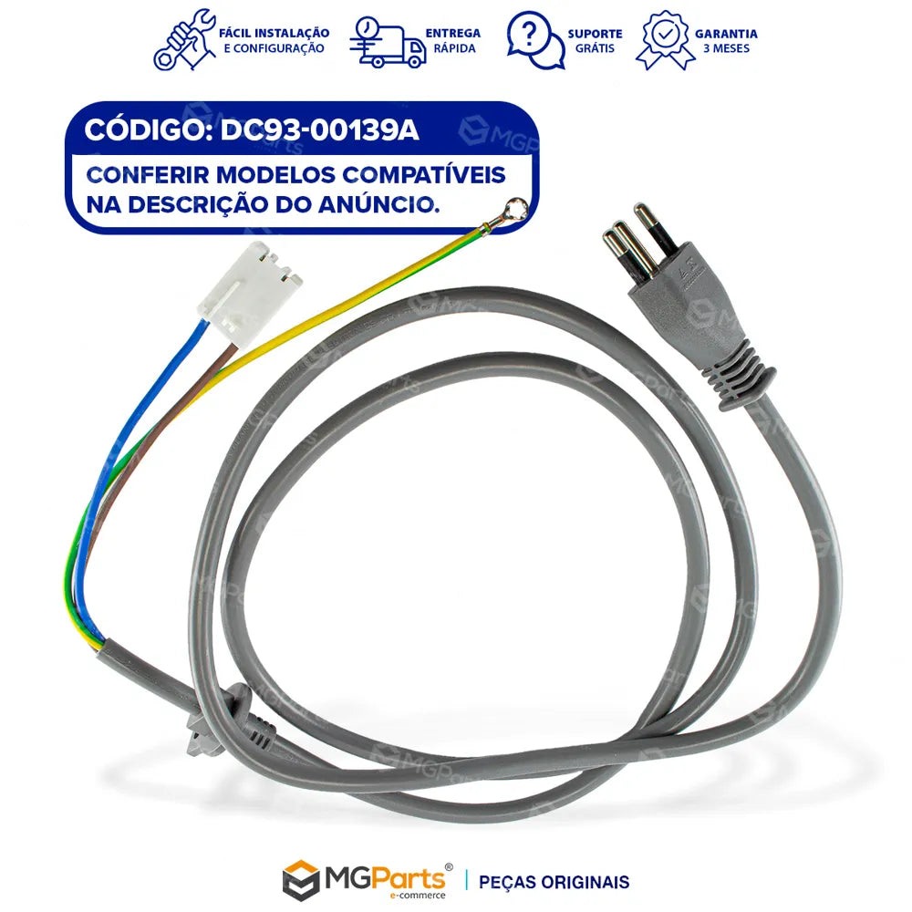 Sua lavadora ou lava e seca Samsung está sem energia ou apresentando mau contato na alimentação elétrica? O Cabo de Força Original Samsung é o componente essencial para restabelecer a segurança e o funcionamento correto do equipamento, garantindo eficiência e proteção para o sistema elétrico. Evite riscos de curtos e assegure um desempenho estável com a peça original da marca.