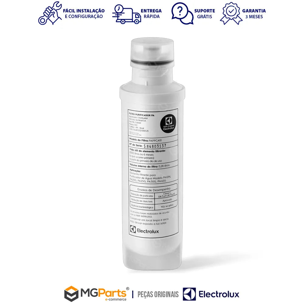 Verifique o modelo do seu purificador para garantir a compatibilidade. Este filtro é indicado para os modelos Electrolux: PA10N, PA20G, PA25G, PA30G e PA40G. O uso de refis não originais pode comprometer a qualidade da água e reduzir a vida útil do aparelho.