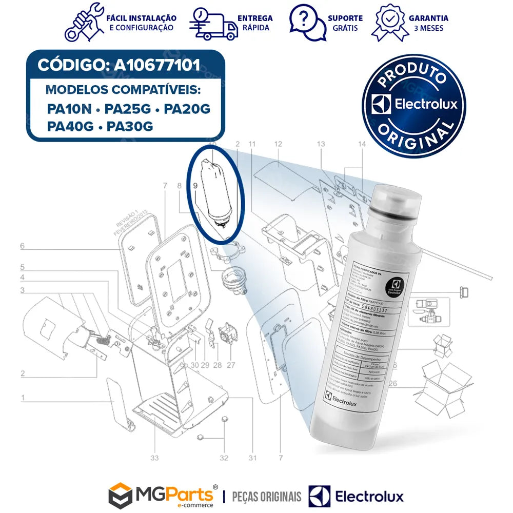 Na MGParts, você conta com estoque próprio, emissão de nota fiscal, suporte técnico especializado e envio ágil. Apostar em peças originais Electrolux é investir na saúde da sua família e na durabilidade do seu purificador.