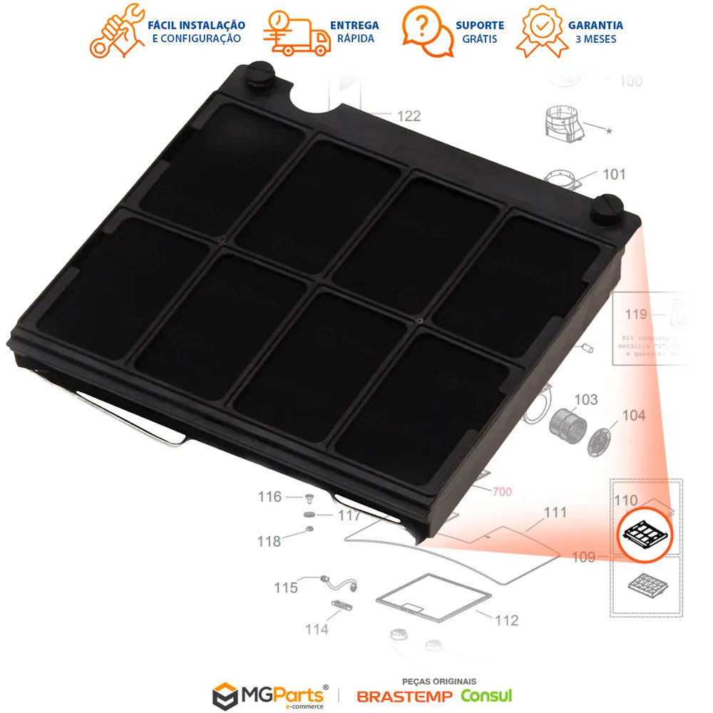 - Compatível somente com coifas Brastemp que utilizam filtro de carvão ativado código 326071153.