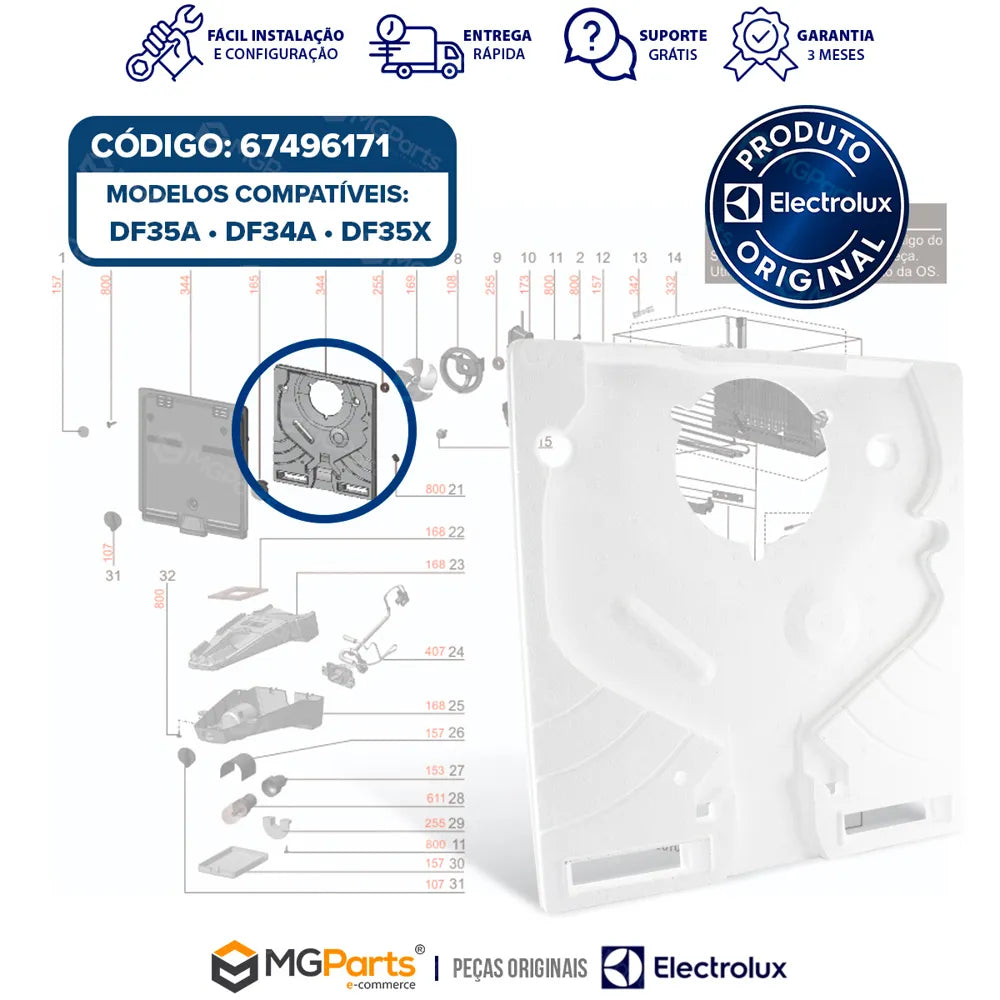 A MGParts é referência no fornecimento de peças originais para eletrodomésticos, com estoque próprio, nota fiscal em todas as vendas e suporte especializado. Aqui você garante uma compra segura, atendimento confiável e a certeza de que está adquirindo um produto original, que aumenta a durabilidade e eficiência do seu eletrodoméstico.
