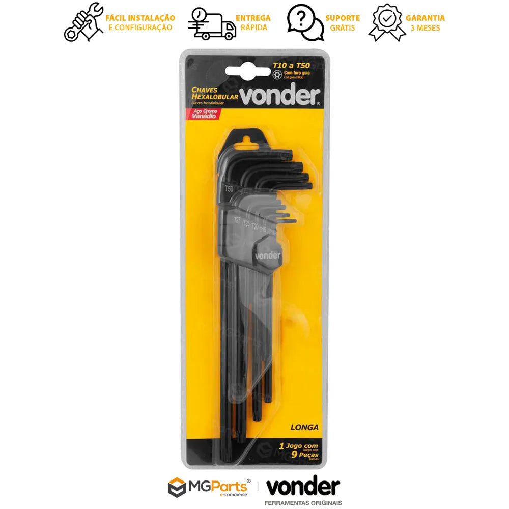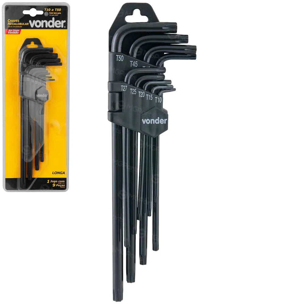 Jogo de Chaves Hexalobular Longas Torx T10 a T50 Vonder com 9 Pecas
