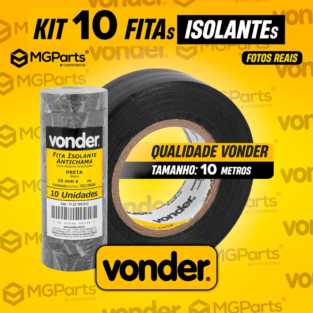 KIT 10 FITA ISOLANTE VONDER 19MM X 10 METROS – SEGURANÇA PROFISSIONAL COM TECNOLOGIA ANTICHAMAS