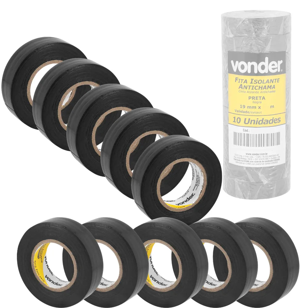 Kit 10 Fita Eletricista Antichamas Vonder Preta 19mm X 10m