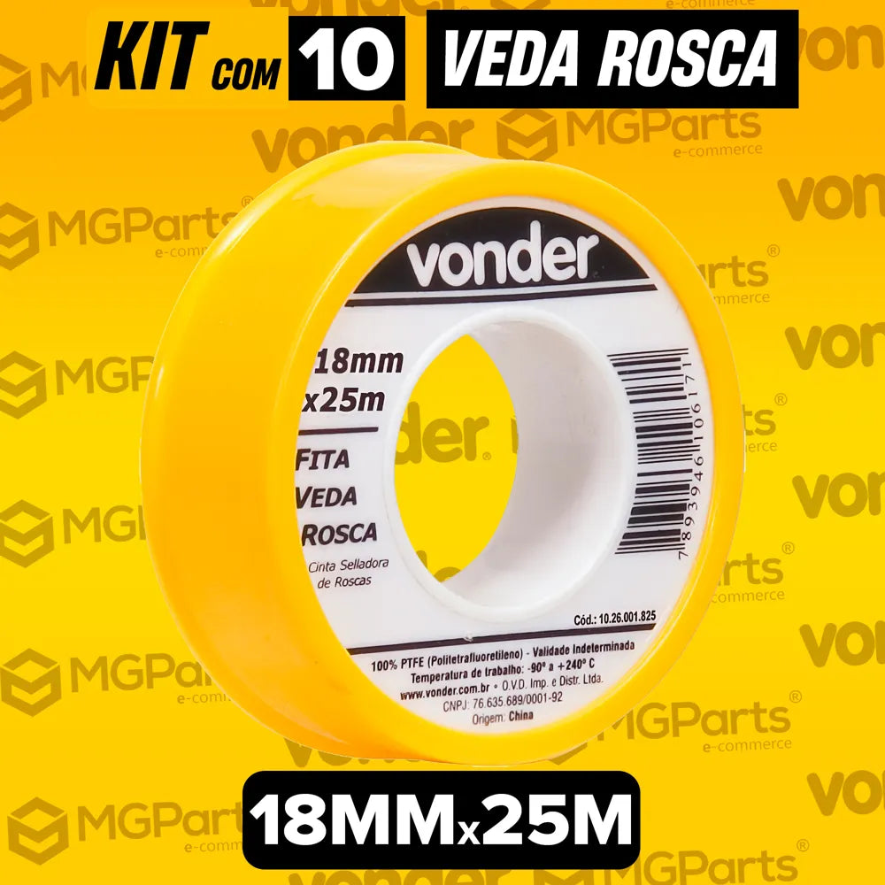 KIT 10 FITA VEDA ROSCA VONDER PROFISSIONAL 18MM X 25M ORIGINAL – MÁXIMA VEDAÇÃO PARA USO HIDRÁULICO