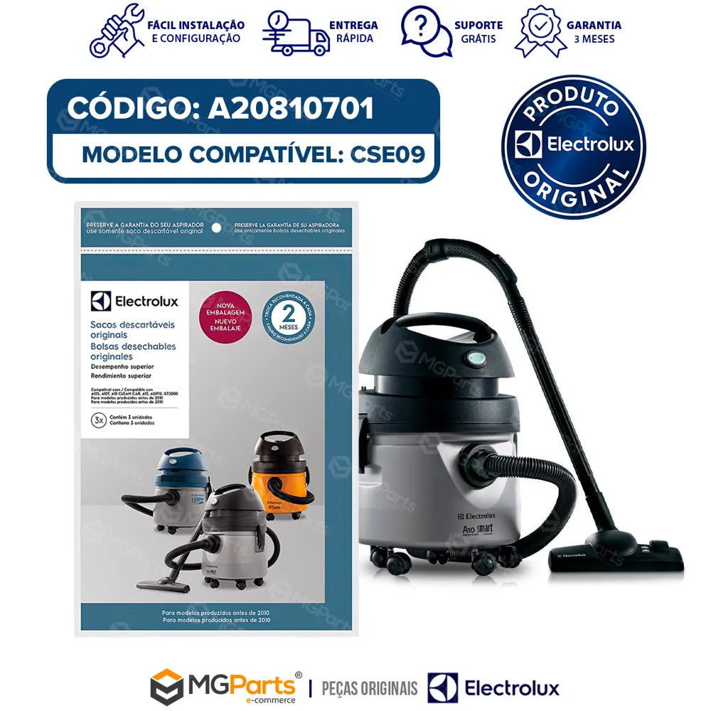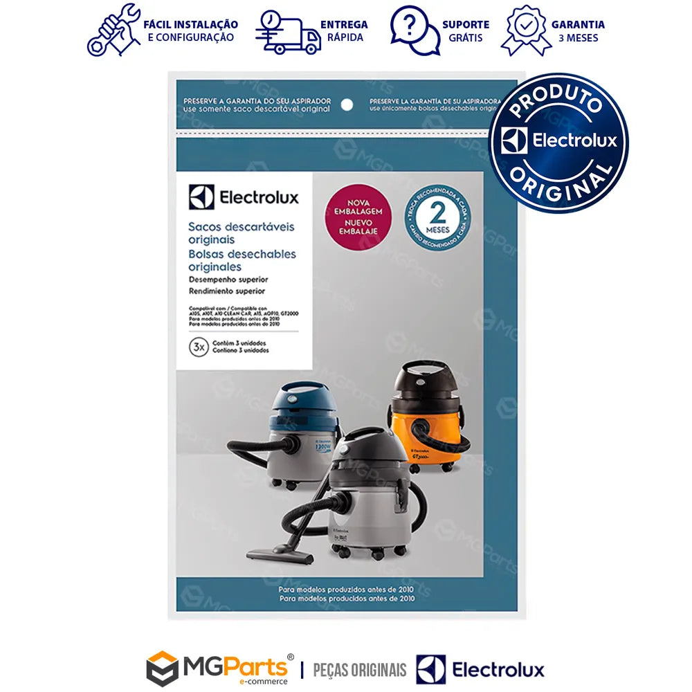 - Compatível com aspiradores Electrolux A10S, A10T, A10 e GT2000 (produzidos antes de 2010)