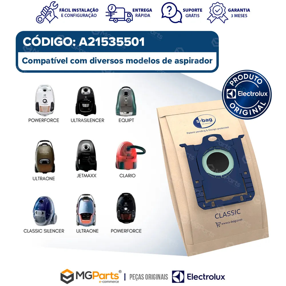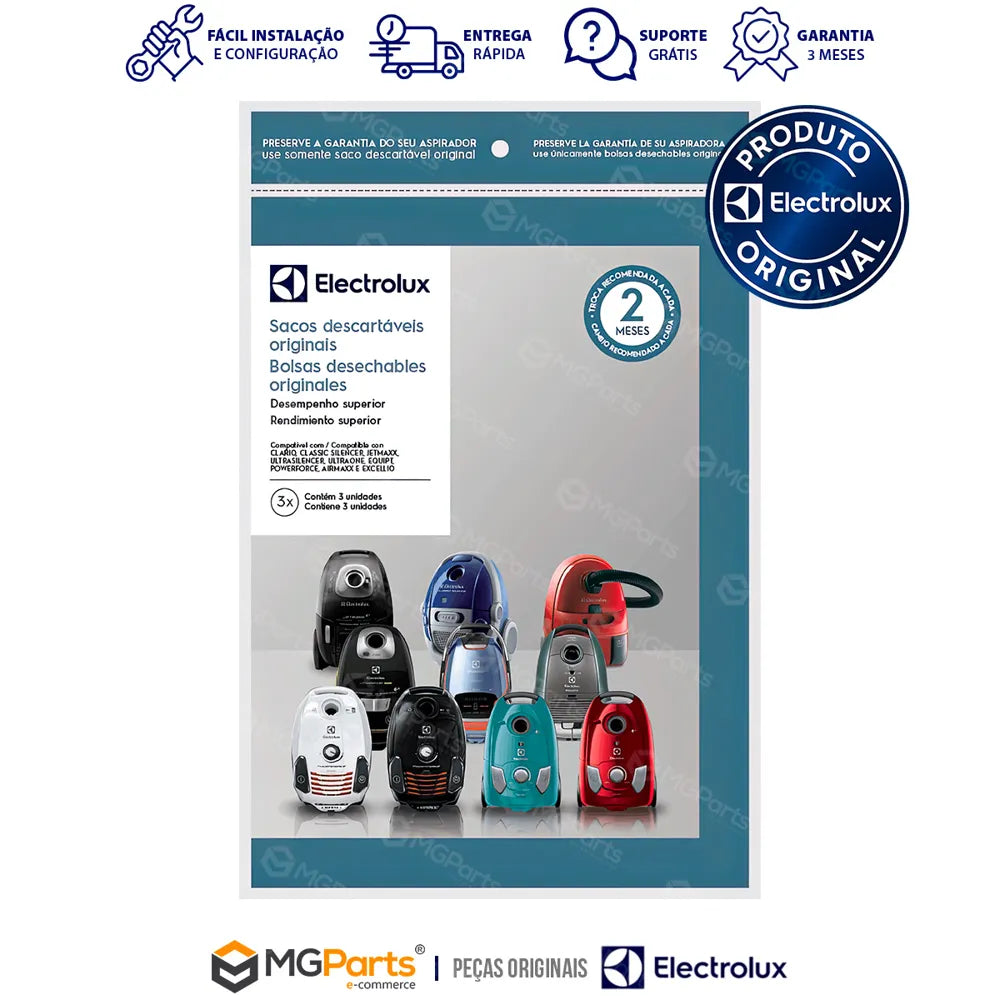 - Quantidade: 03 sacos descartáveis Electrolux