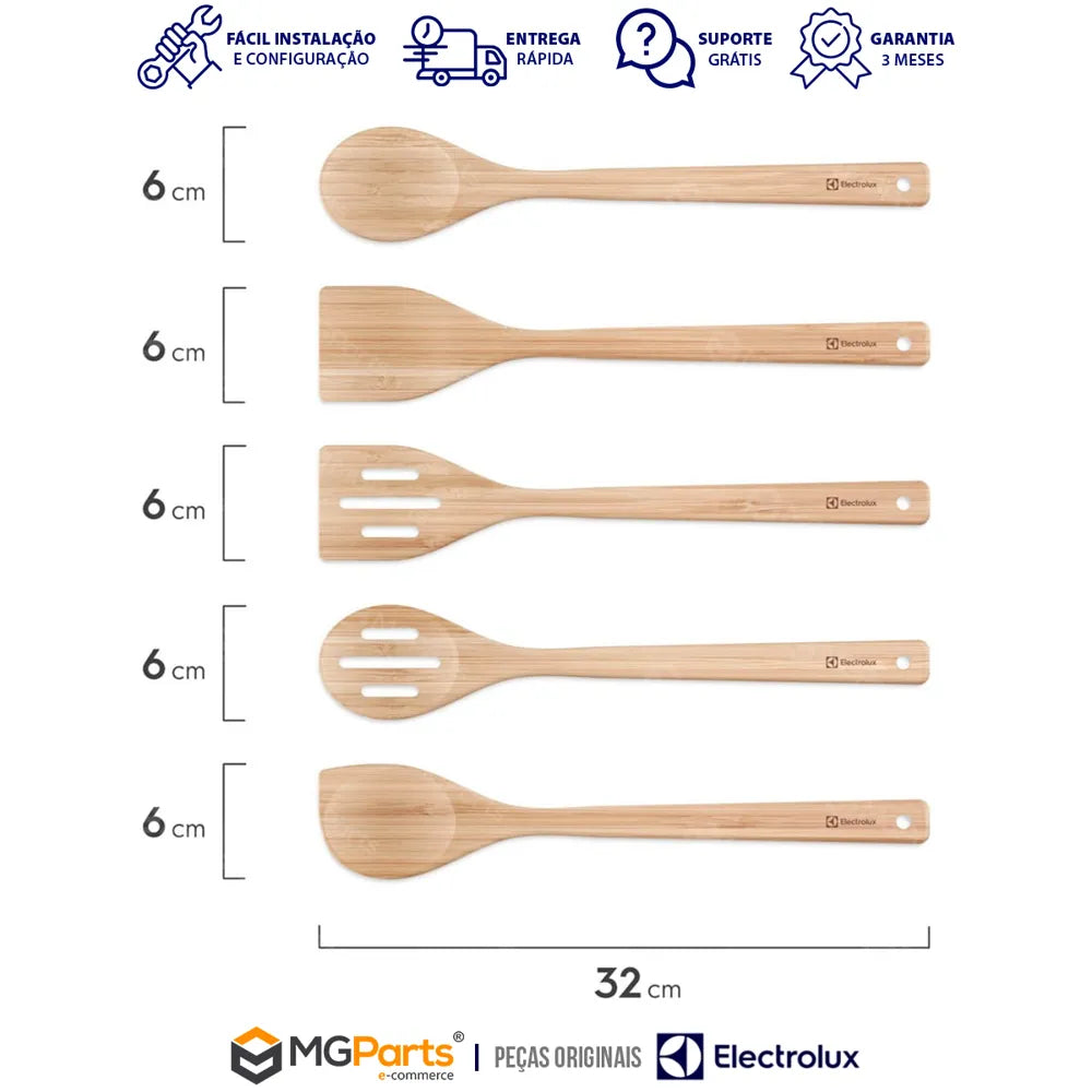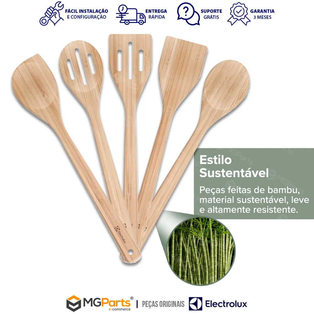 CONJUNTO DE UTENSÍLIOS DE BAMBU PARA COZINHA ELECTROLUX 6 PEÇAS ORIGINAL