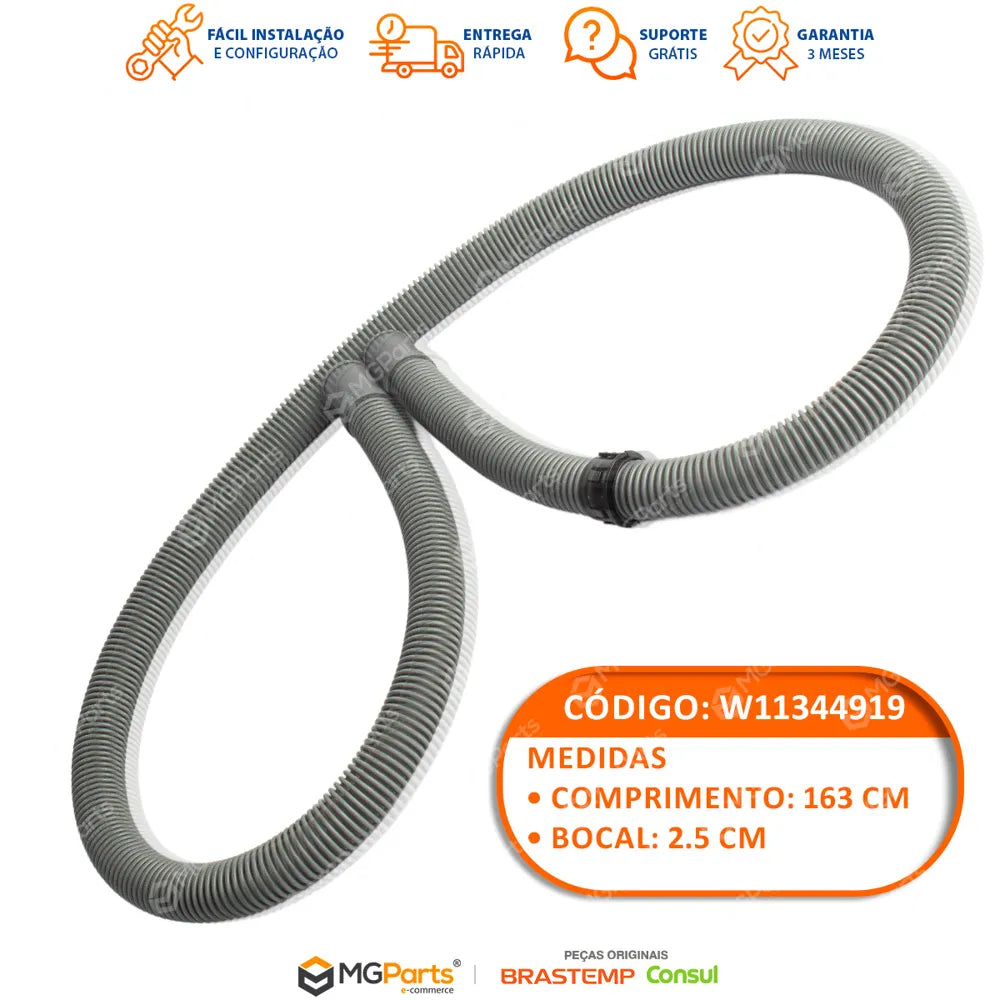 Utilizar mangueira original evita adaptações improvisadas, garante vedação adequada e preserva o funcionamento da bomba de drenagem. Na MGParts você compra com confiança, recebe nota fiscal e conta com atendimento especializado para garantir a peça correta. Garanta agora a Mangueira de Drenagem Original W11344919 e mantenha sua lava-louças funcionando com máxima eficiência.