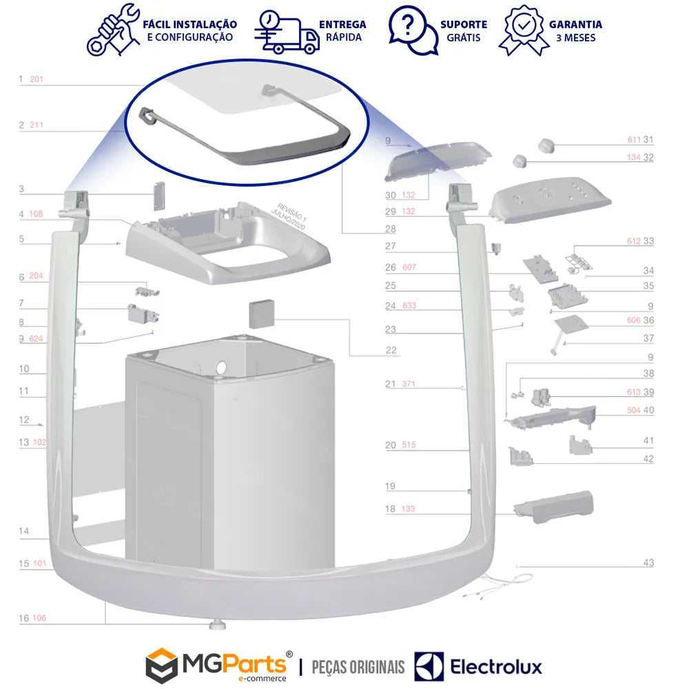MOLDURA DA TAMPA PARA LAVADORA DE ROUPAS ELECTROLUX ORIGINAL