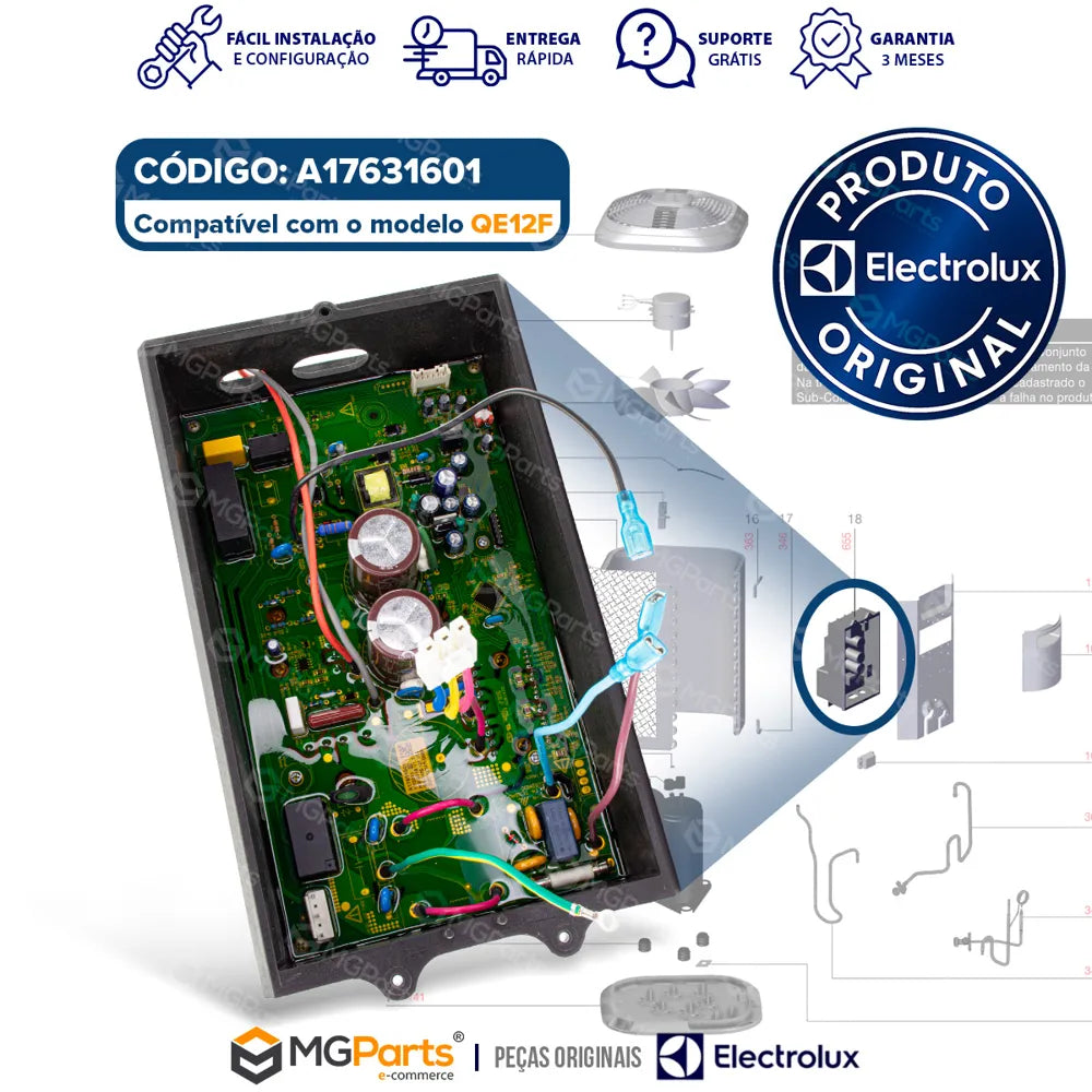 Sua condensadora Electrolux parou de funcionar corretamente? A Placa para Condensadora Electrolux 12000 BTUs Inverter Original A17631601 é o componente essencial para restabelecer o desempenho ideal do equipamento, garantindo eficiência energética, estabilidade operacional e longa vida útil. Adquirindo com a MGParts, você tem a certeza de comprar uma peça 100% original, com nota fiscal, envio rápido e suporte técnico especializado — a combinação perfeita para quem busca segurança e confiança.