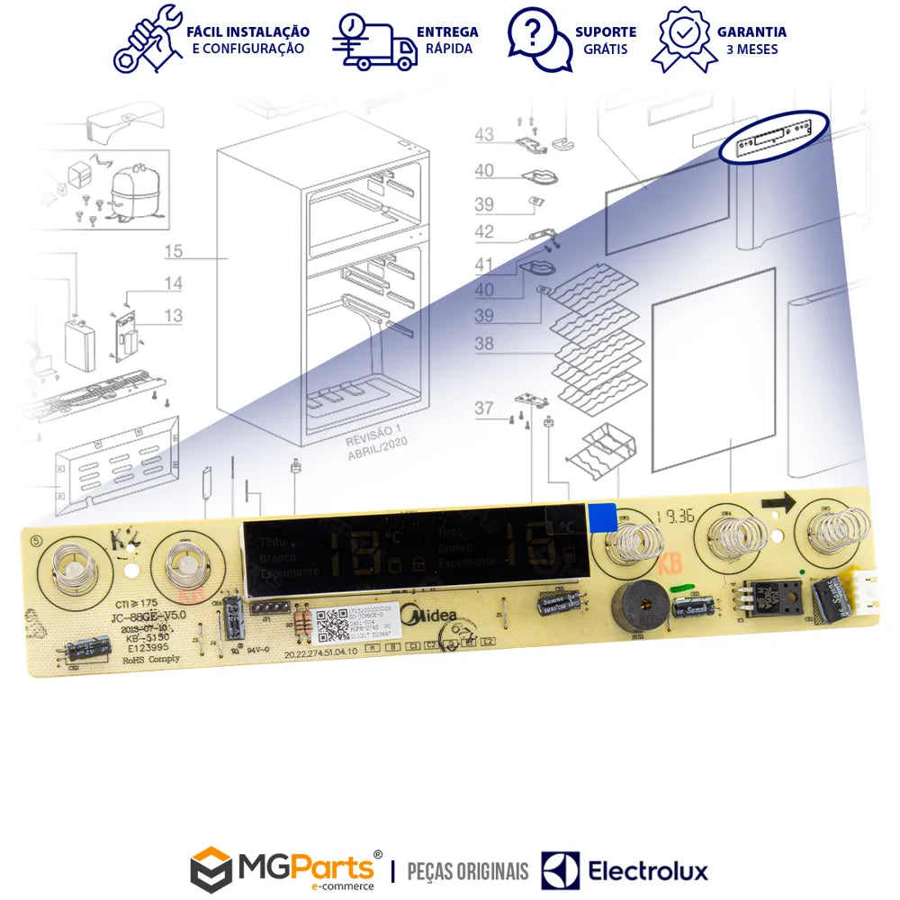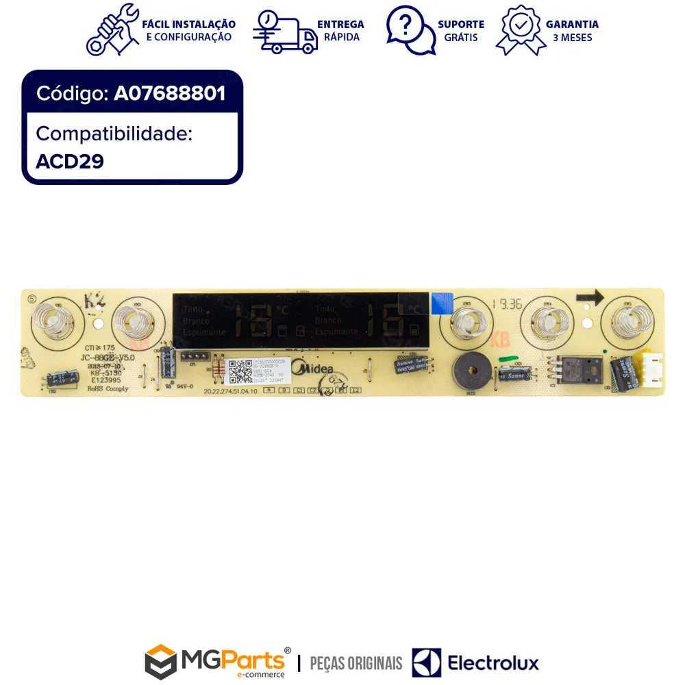 PLACA INTERFACE ORIGINAL PARA ADEGA ELECTROLUX A07688801 – CONTROLE PRECISO E FUNCIONAMENTO CONFIÁVEL
