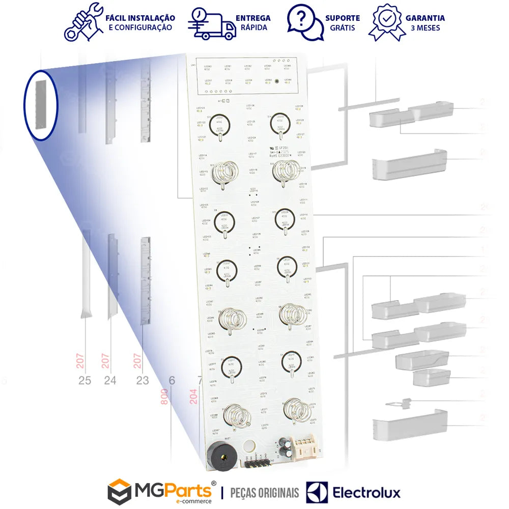 Seu refrigerador está com falhas nos botões de comando, não acende o painel ou apresenta comportamento instável? A Placa Interface Original Electrolux A13404901 é a peça certa para restaurar o controle total e a funcionalidade do seu equipamento. Produzida com componentes de alta precisão, garante o desempenho e a durabilidade que só peças originais Electrolux oferecem. Compre com a MGParts e tenha nota fiscal, envio rápido e suporte técnico especializado.