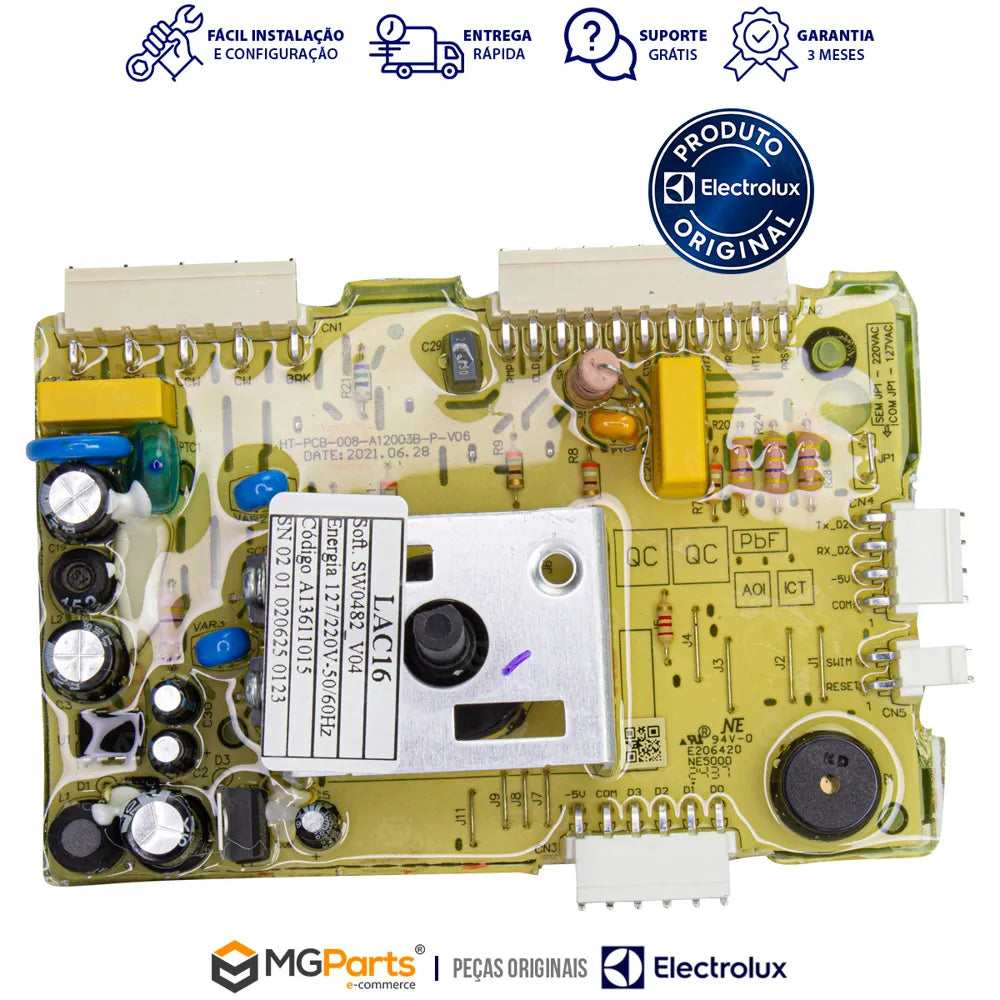Sua lavadora Electrolux apresentou falhas de funcionamento, parando no meio dos ciclos ou não ligando corretamente? A substituição da placa de potência pode ser uma solução definitiva. Esta peça original foi desenvolvida especialmente para garantir que sua lavadora LAC16 funcione com desempenho de fábrica, restaurando a eficiência e evitando maiores danos ao equipamento.