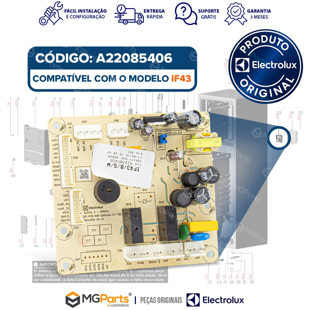 Sua geladeira Electrolux parou de gelar ou não está ligando corretamente? A Placa de Potência Original A22085406 é a solução ideal para restaurar o funcionamento do sistema eletrônico do seu refrigerador. Produzida com os mais altos padrões de qualidade, garante desempenho confiável e segurança total no uso diário. Compre com confiança na MGParts , referência em peças originais com nota fiscal, estoque próprio e envio rápido.