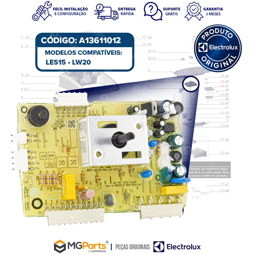 Sua lavadora parou de funcionar corretamente? Ciclos que não iniciam, falhas no funcionamento ou desligamentos inesperados geralmente estão relacionados a problemas na placa de potência. A Placa de Potência Original Electrolux é a solução definitiva para restaurar a performance da sua lavadora LES15 ou LW20 com a segurança e confiabilidade que só peças originais oferecem.