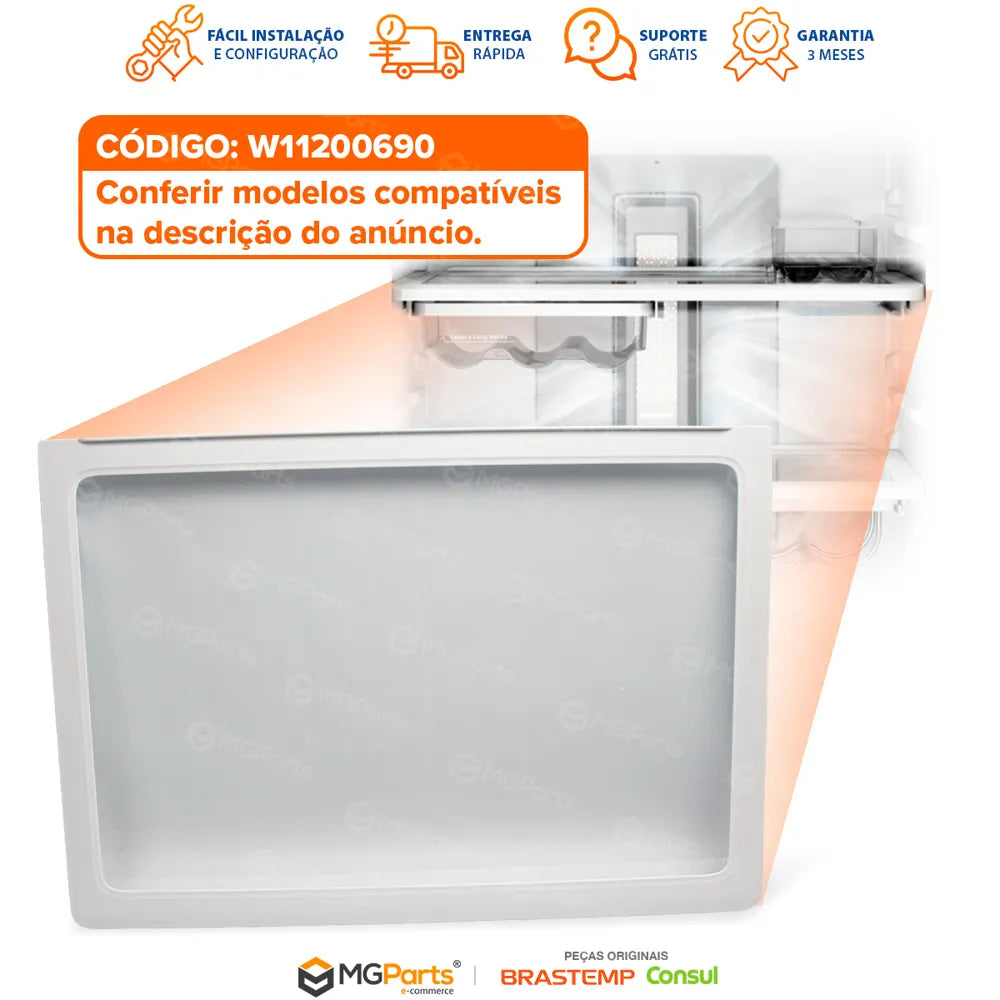 A prateleira central da geladeira é uma das partes mais utilizadas no dia a dia. Quando ela quebra, trinca ou perde estabilidade, a organização interna do refrigerador fica comprometida e o armazenamento de alimentos se torna inseguro. A Prateleira Central Original W11200690 é uma peça de reposição ideal para restaurar o espaço interno de sua geladeira Brastemp com encaixe perfeito e resistência adequada para o uso diário.