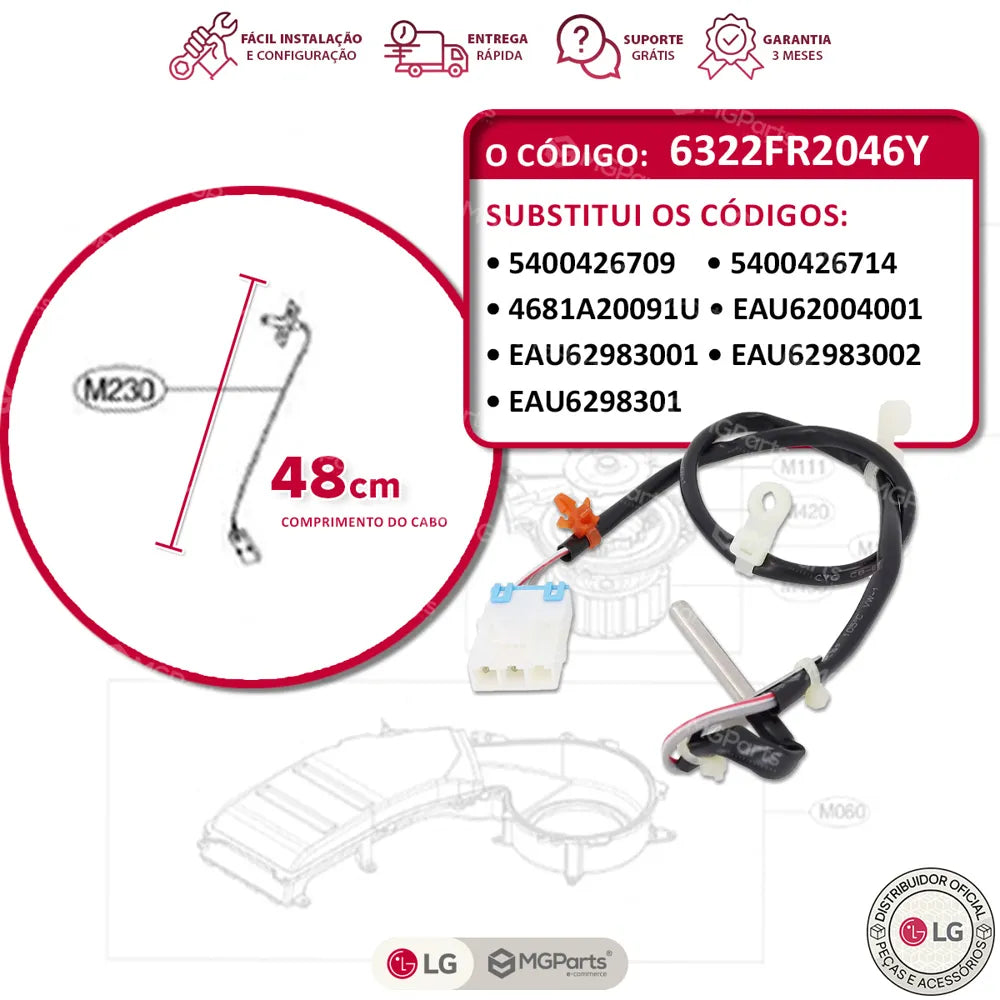 TERMISTOR SENSOR DE TEMPERATURA ORIGINAL PARA LAVA E SECA LG – 6322FR2046Y