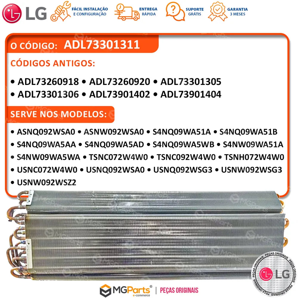 Serpentina Evaporadora Ar 9000 Btus LG Usnc07 Usnq09 Usnw09 ADL73301311